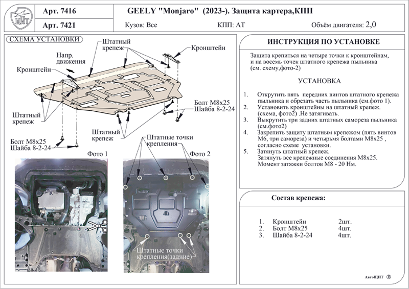 КаталогЗащита картера УСИЛЕННАЯ. Сталь.GEELY Monjaro 2025-